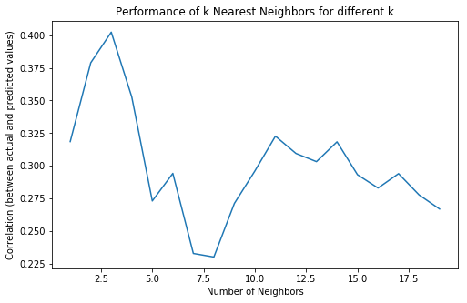 With the value of k=3, we apply the model to the training set and look at it’s performance on the test set. To calculate performance, we first perform a linear regression on the actual and predicted values on the training set. We obtain that